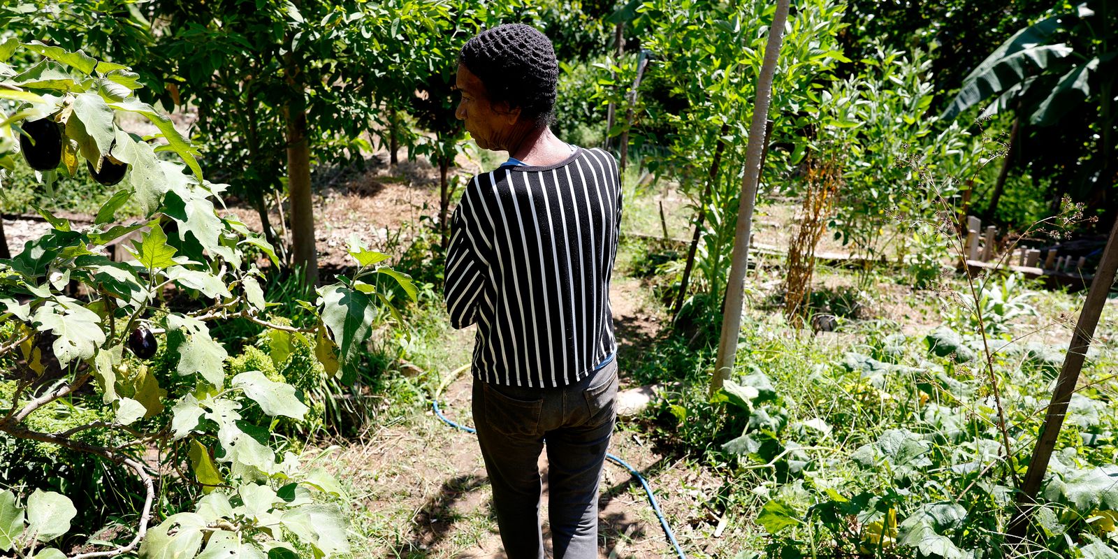 Faz um ano que a rotina de Vera Lúcia Silva de Souza, de 74 anos, começa cedo. Ela molha as plantas de casa e encara a pé a descida íngreme desde o alto do Morro do Salgueiro, na zona norte do Rio de Janeiro. Na parte baixa da comunidade, fica a horta comunitária onde trabalha para complementar a renda.